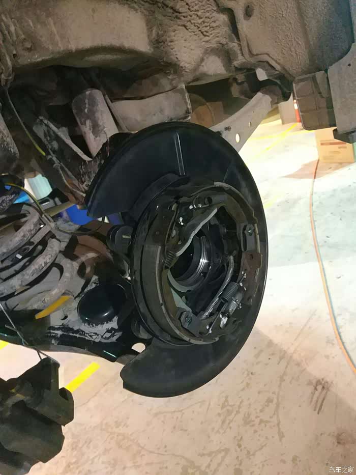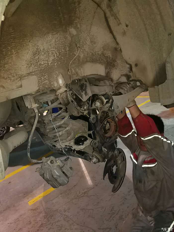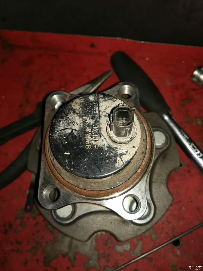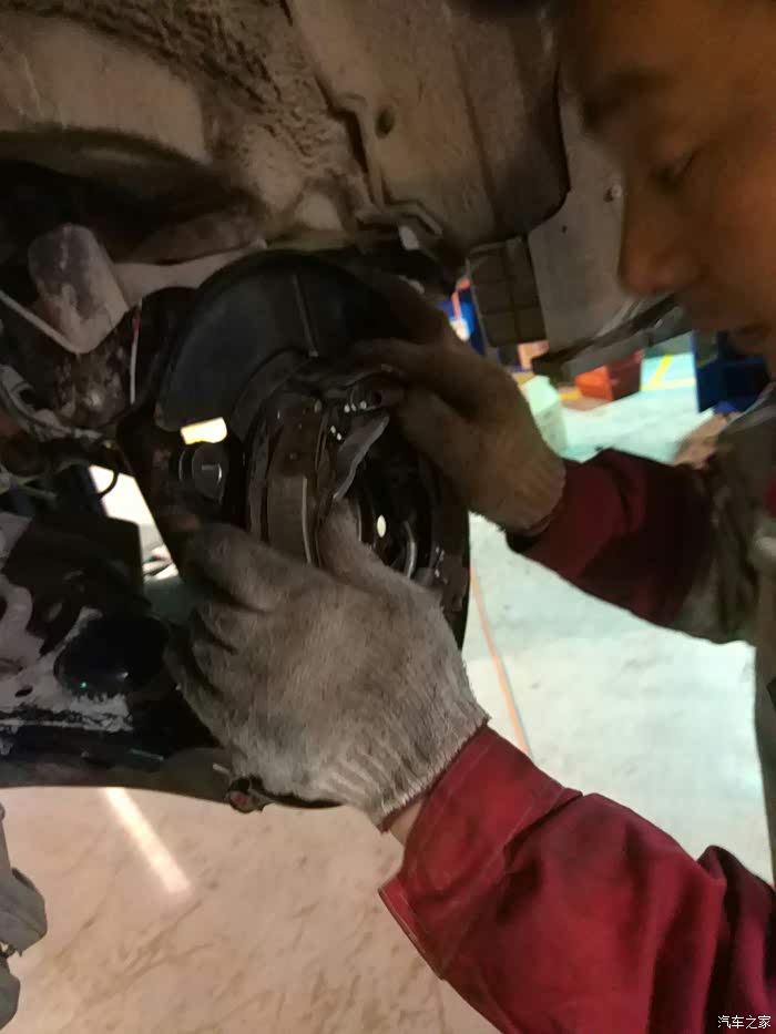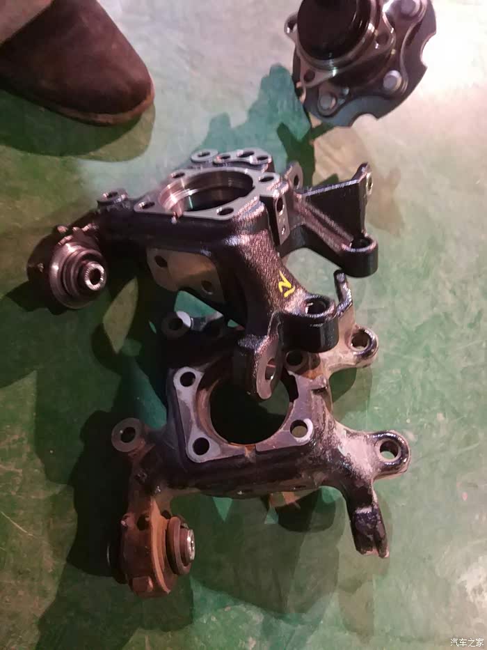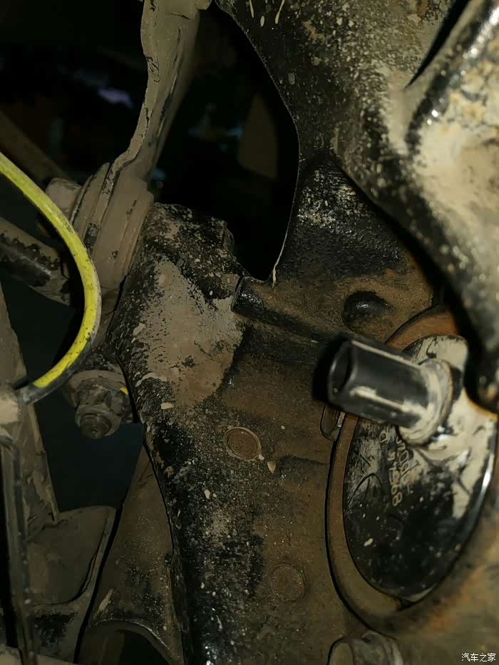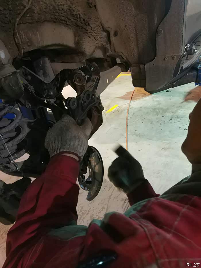 轴承拆掉,然后把固定手刹片的支架拆了,然后开始拆卸右后轮轴头。