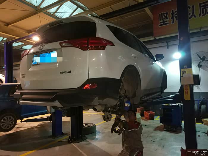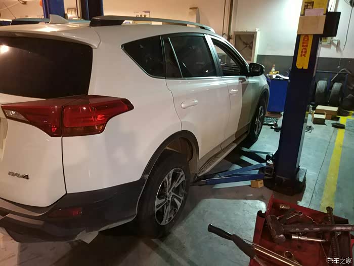 轮胎安装完以后需要定位。RAV4的后部悬挂属于独立式悬挂,可以调整前束,但是后轮外倾无法调整。好在更换羊角轴和轴承以后数据基本上都恢复了正常数据。