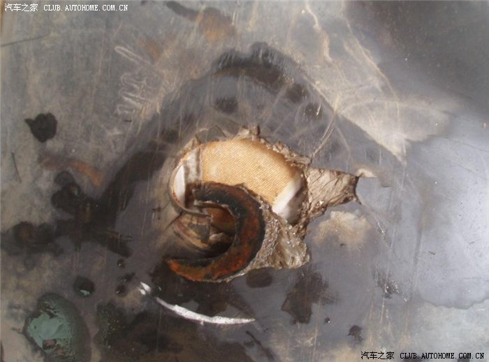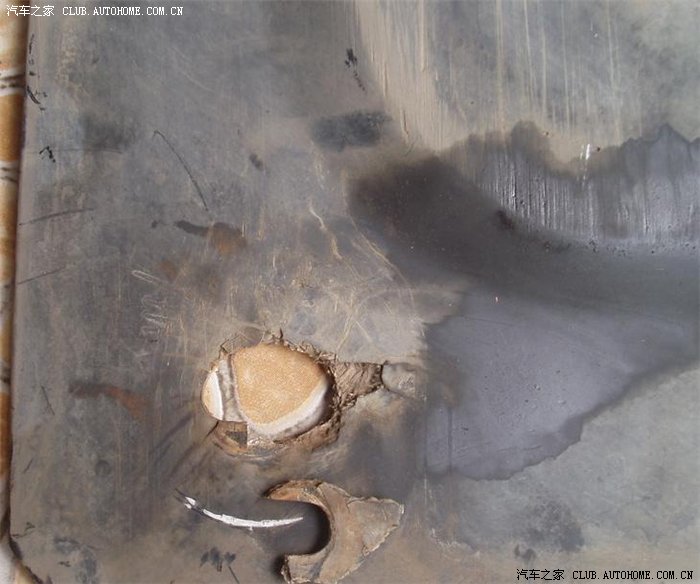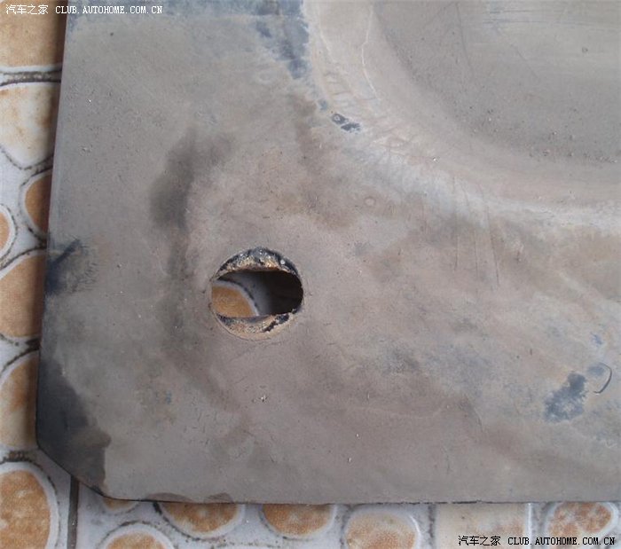 买车时4S送了一个钢护板,由于有点共振,所以去年从淘宝上买了一个所谓的树脂护板(专用),当时在淘宝上找了几天,终于相信了一个卖家,最后以200块成交,找地方装上没有了共振,心里高兴得不得了,前段跑了一趟乡下,在一段土路上托底了,当时想有护板就没放在心上,回来后一直开底盘有,后来一检查发现是护板破了,我自己费了半天的时间将护板抓拆了下来,发现有一个螺丝眼缺口了,估计是当时托底搞的,但最令我吃惊的是所谓的树脂发动机护板居然就是一块垃圾压成的硬塑料板,为了防止有的TX上当,特拍下: