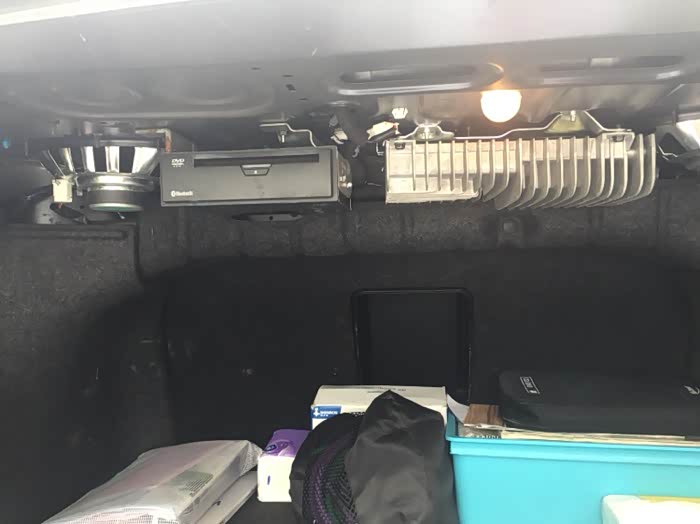 博士音响,功放和DVD导航播放器,前储物柜还有DVD播放机。