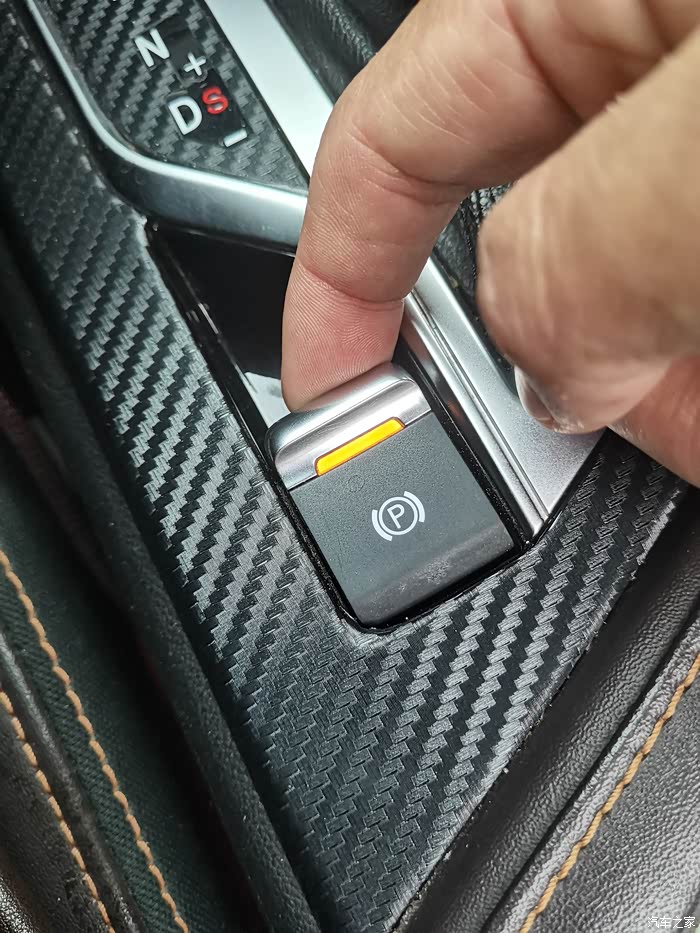 当我们挂倒档的时候,直接按住按钮踩着刹车,往后一推就可以了。