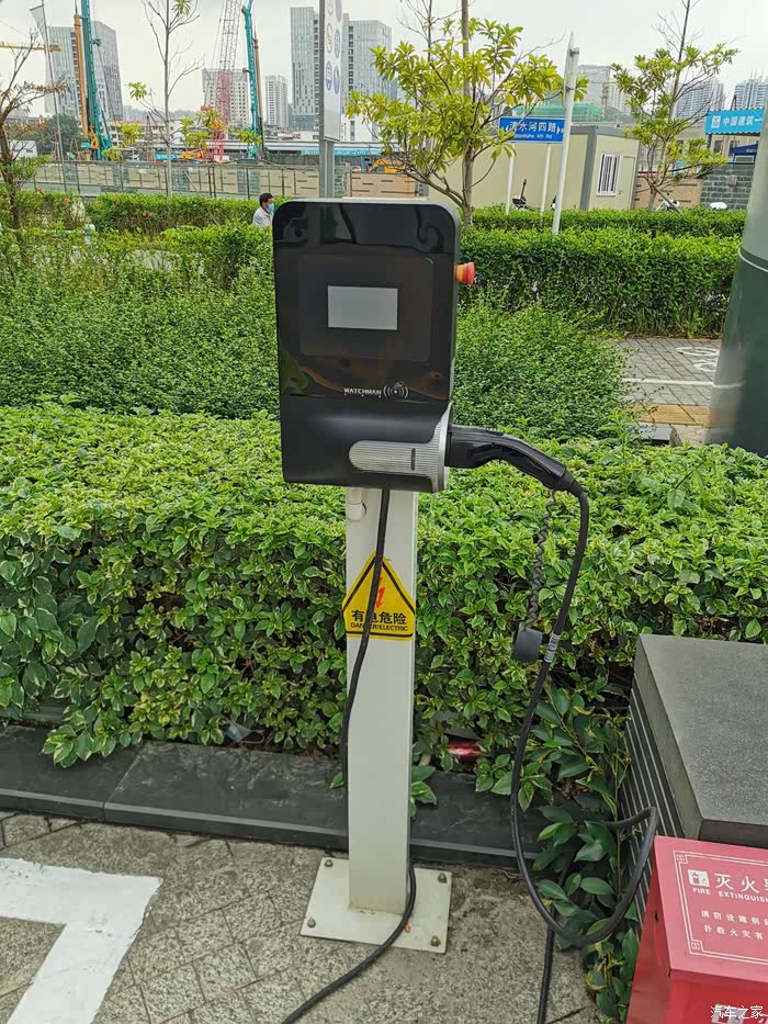 第一批电桩带显示器,能APP或刷卡控制开关。3.5千瓦的电桩,3小时充满。