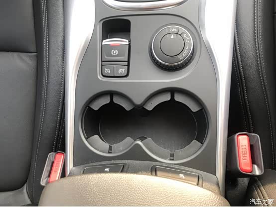 档位后面就是电子手刹和多路况适应系统的操作区域,有几种模式可调来适应不同的路况条件。一大一小两个杯架的设计很合理,不管是大瓶子还是小瓶子放进去都能很稳当。
