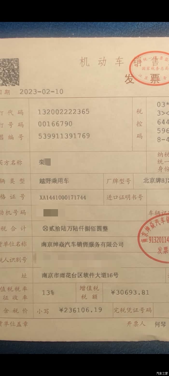 我的真实姓名,群里很多老车主基本都是知道的,所以咱这里就只留姓氏了。君子坦荡荡,咱什么都不怕晒,本人是盲订者共创家第0281号,购车时除享受了厂家给所有盲订者的统一优惠外,再无任何优惠,而且是全款购车(非贷款)的,南京的60车主有兴趣的也可以去4S店查实。