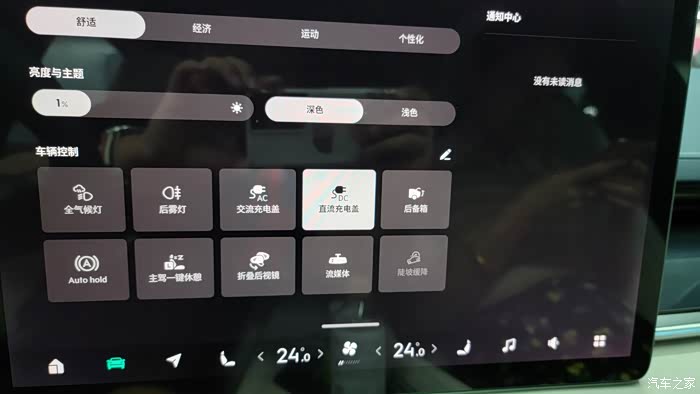 在车机上找到直流充电口,点击打开。这里有个小技巧,可以在车机界面下滑,快捷方式中点击,当然也可以在车辆界面打开。直流充电口是电动开启关闭的,切勿大力掰扯哦。