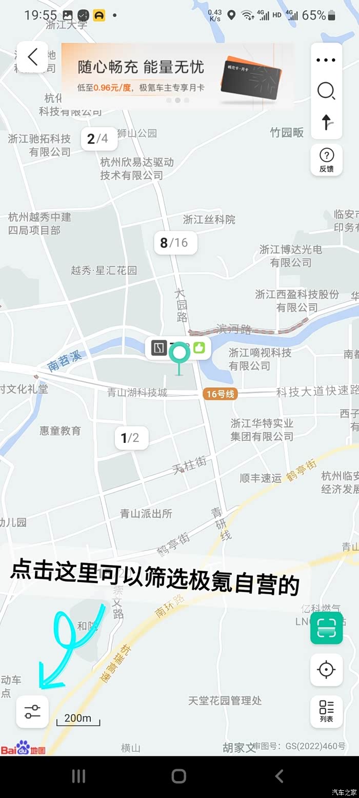 首先,可以在极氪官方app上打开爱车-充电地图,查看附近的充电桩。如果想搜索极氪自营的,可以点击左下角筛选。可以看下截图