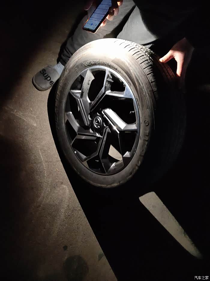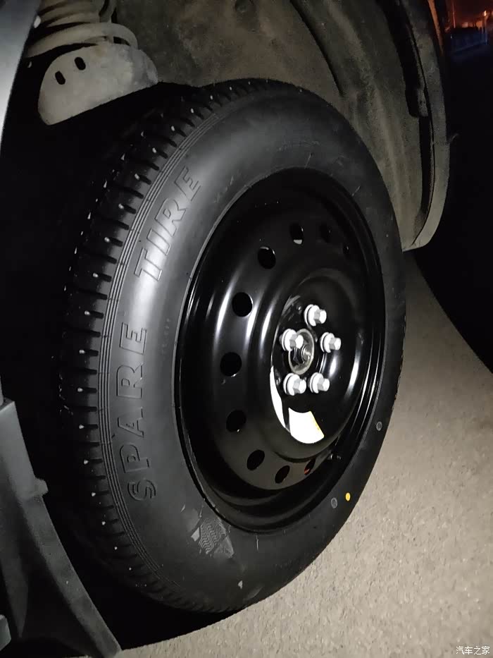 晚上的时候还没有看出来什么,白天再开车的时候就可以看的到轮毂的区别,小七自带的轮毂确实是非常的漂亮。不过备胎的尺寸也是非常好的,更换上备胎之后驾驶起来没有什么不一样的地方,不过还是要注意不能过快的去驾驶车辆。毕竟轮胎规格还是有一些差距的。安全驾驶最为重要了。