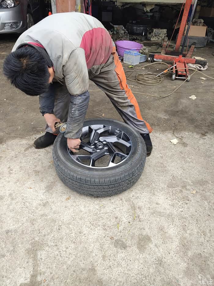 更换完了备胎也已经是到了晚上,所以我就打算第二天一早再拉着我换下来的车胎去修理厂让师傅看一下。