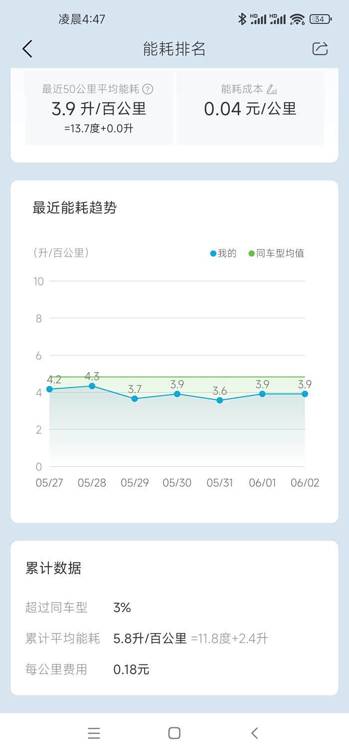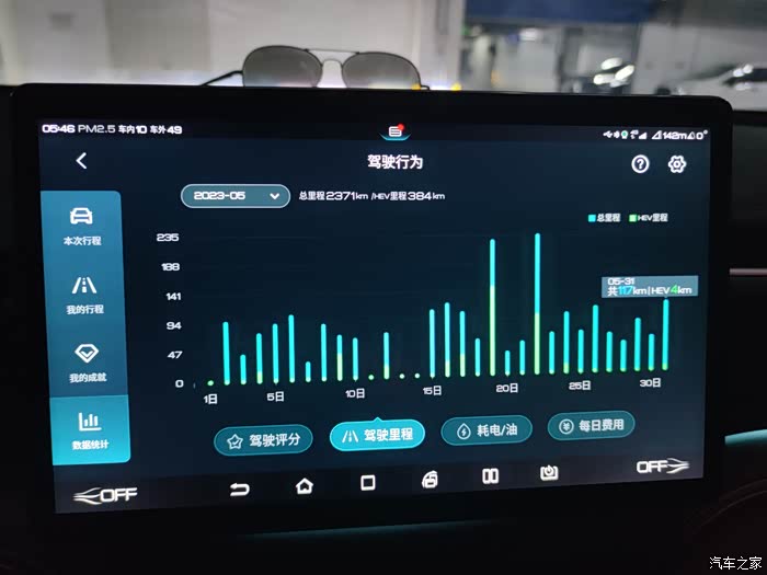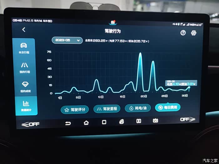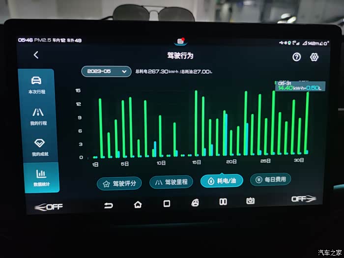 单独拿五月看一下吧!行驶里程2371公里,其中HEV384公里,其中有一个往返两百公里小长途,全程hev加标准模式!车速110-120,有私桩,每天一充电!2371公里,电量使用267.3千瓦时,每千瓦时0.26元,电费70元 ,消耗燃油27L今日油价7.49元每升,合计202元,总计:272元。每公里:0.115元。