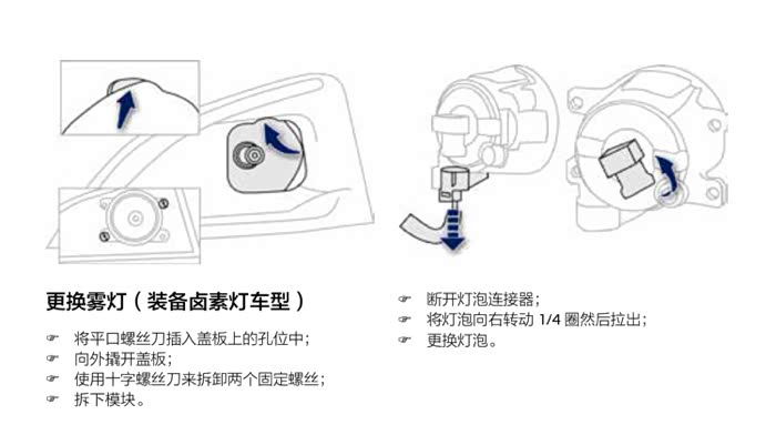 之前看到有车友拆保险杠换雾灯,后来看说明书发现只需要撬开雾灯装饰板就可以换,于是立即行动。