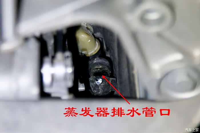 这是被处理过的蒸发器箱排水管出口,就为了清洗方便。