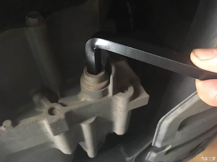 开始换油:首先要知道放油位置,就是这个放油螺丝,用17mm的套筒或者梅花扳手,
