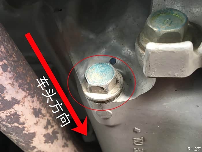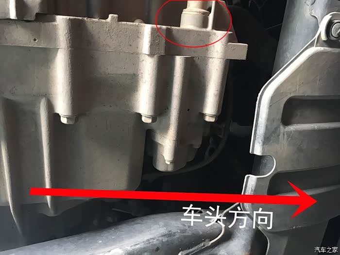 自己动手,位置位置很重要,找到发动机旁边的变速箱,红圈内的螺丝就是放油螺丝。