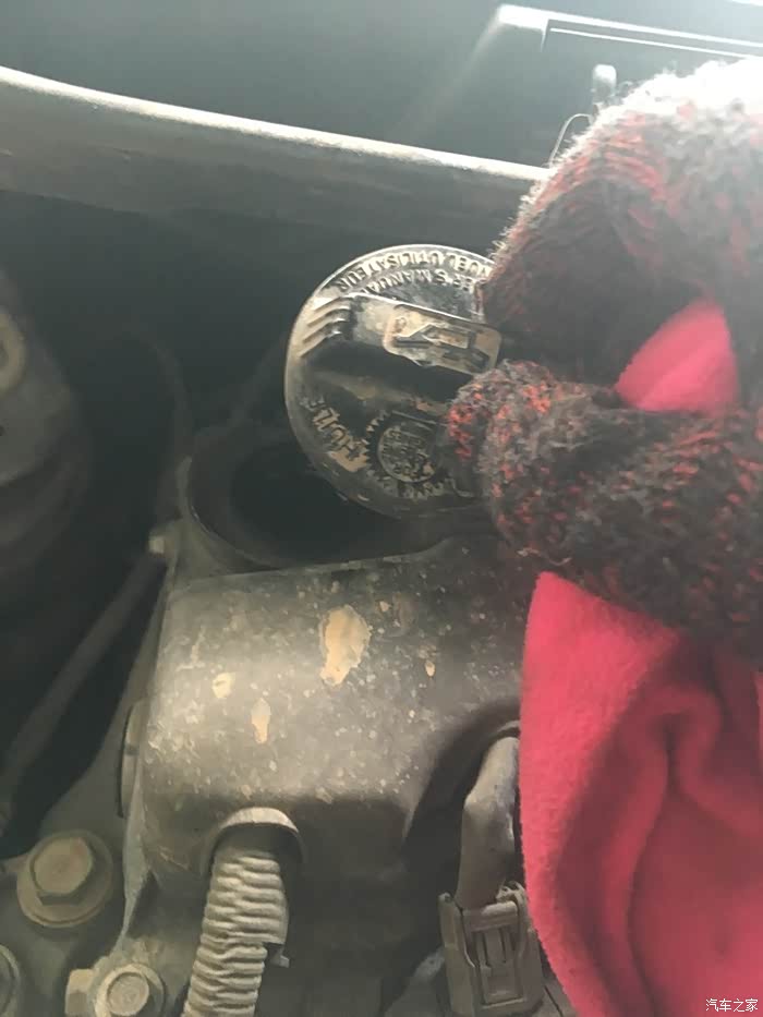 找到发动机加油盖子,这个如果拧不动可以用扳手或者老虎钳拧开