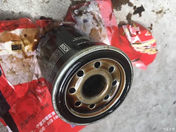 拆下了机滤,博世的,黑黑黑。