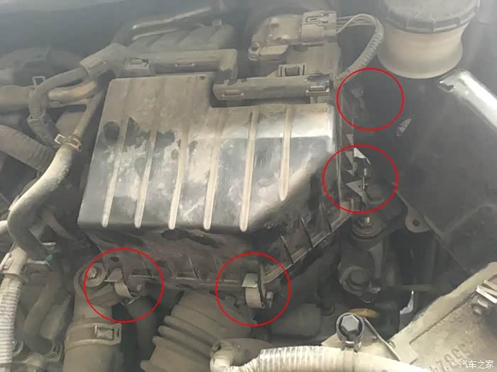 空滤只要拆开四个卡子就好了,红色圆圈内的位置四个卡子
