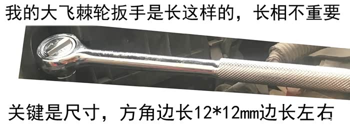 我的棘轮扳手尺寸是12*12mm的方角边长,或者是12.5*12.5mm吧,我是用卷尺量的,没有卡尺那么精确。因为毕竟不是修车师傅,所以尺寸一定要告诉大家,从新手的角度写这个东西。