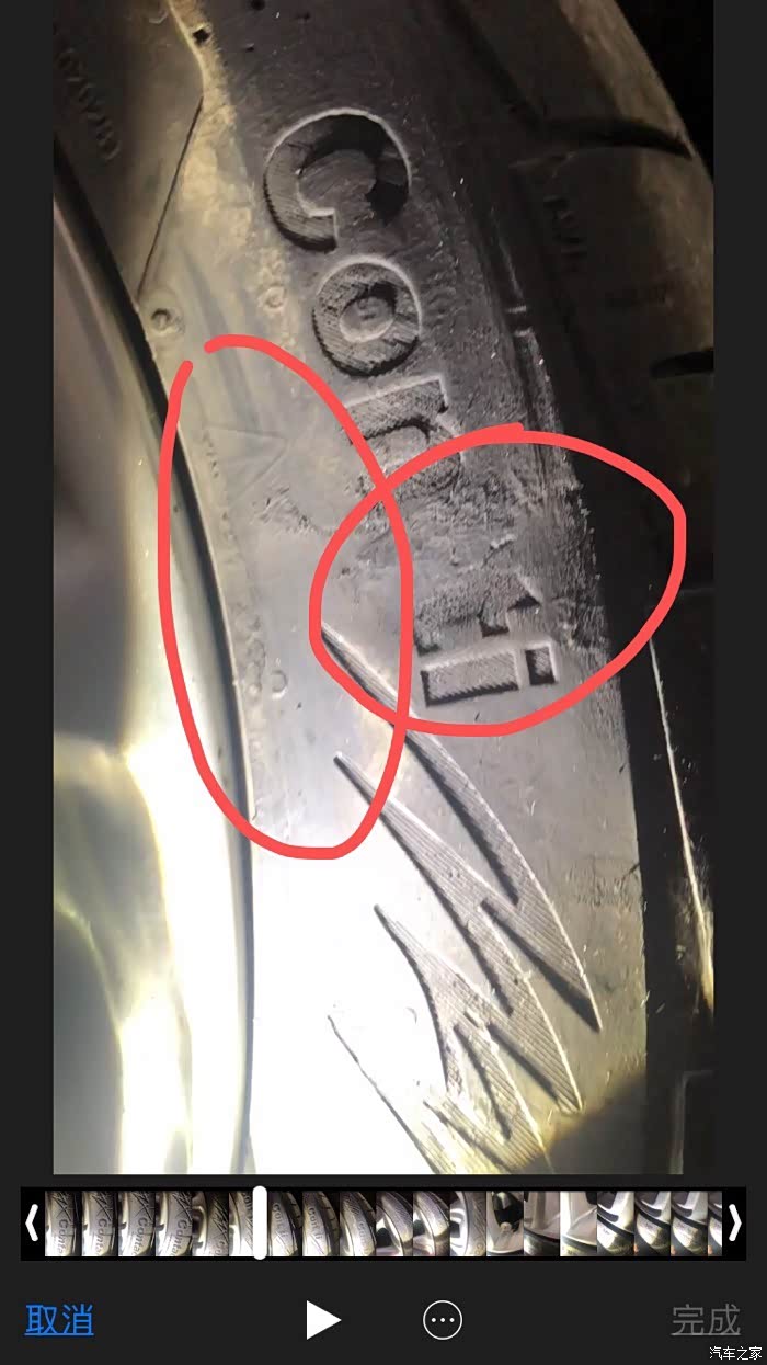 旧的轮胎做好了,做工一比较就是有区别的,不说胎面有红色的胶线,仔细看花纹和图案精致细腻度没法比,当时大致看了下,感觉整体翻新改日期的,没看到侧面有补丁,主要是有很多水干的痕迹,不太好找!