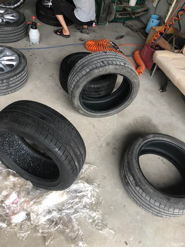 拆车老板说轮胎侧面还是有点硬的,胎面我按了下有韧性……