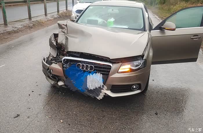 简单描述一下,前面有个人骑摩托车摔倒了,这个天细雨绵绵,摔倒也正常,然后车友的小蓝就刹停了。后面跑上来标志四个圈的车就直接撞上了小蓝的屁股,这种情况不用说都知道后车全责。