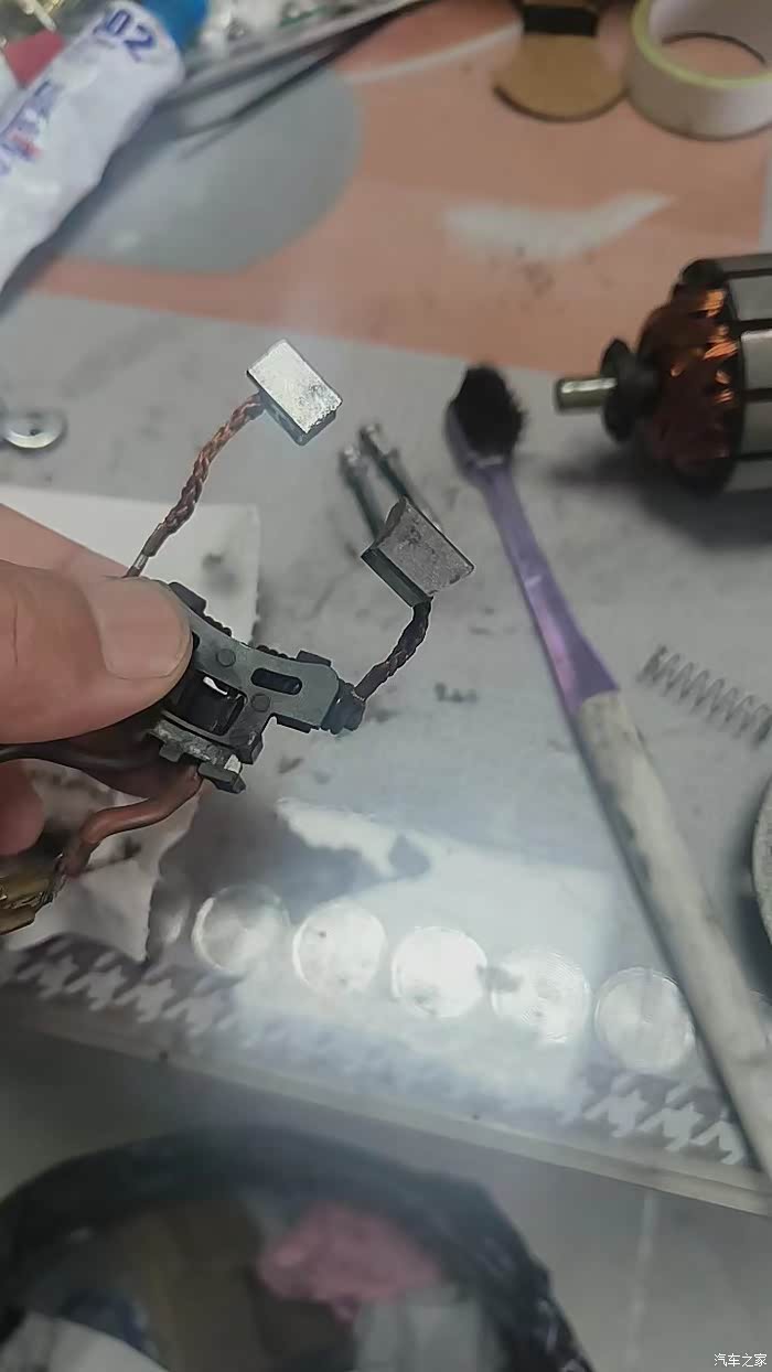 手上都是碳粉,太黑了没法拍照,安装碳刷得双手操作,反复几次都装反了……