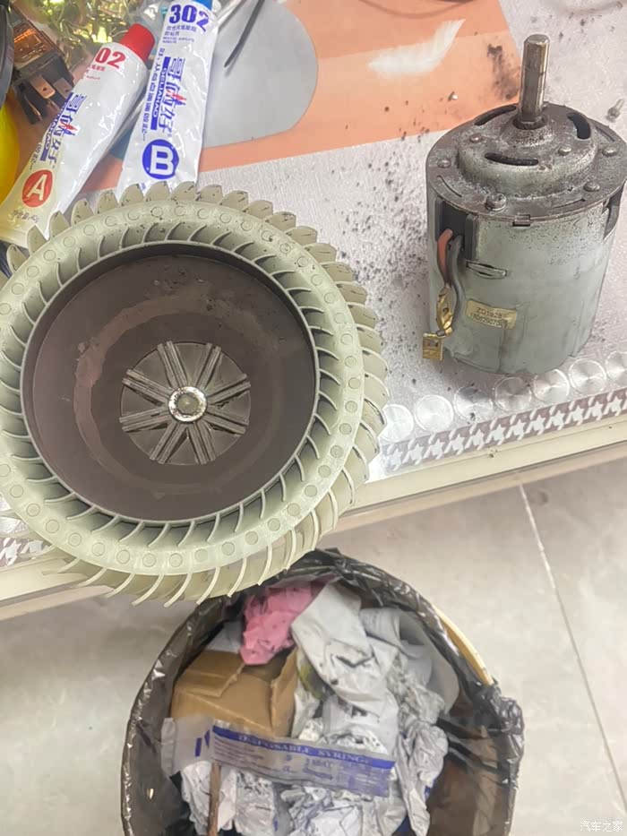 叶轮背面不拆是无法清洗的,比正面还要脏,都是碳粉