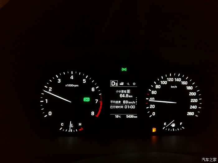 另外在时速75的时候,有部分时候是D6档,部分时候是D7档,所以在开了1/3路程过后,我换成了手动模式,稳定在7档,刚好1500转。