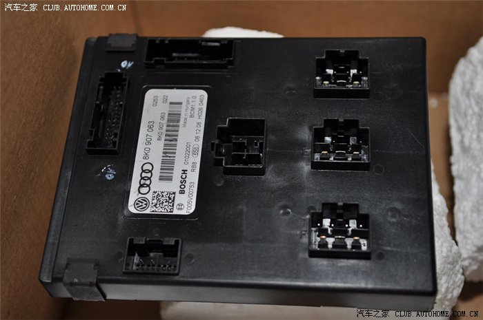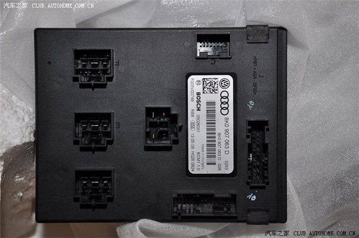 这是新的J519电脑 也是匈牙利造。如果不换电脑则LED不亮、仪表盘变暗、远光也没有。换上新J519后需要用5052解码、编码,否则方向盘会变的奇重无比。