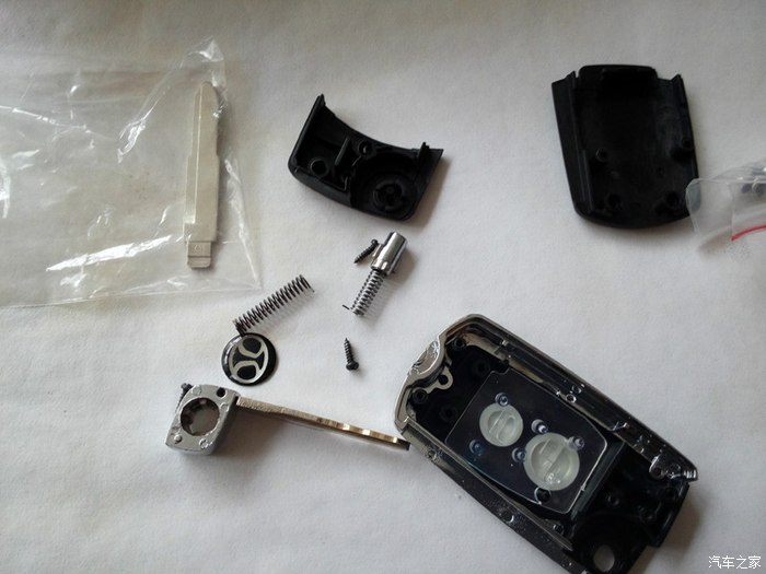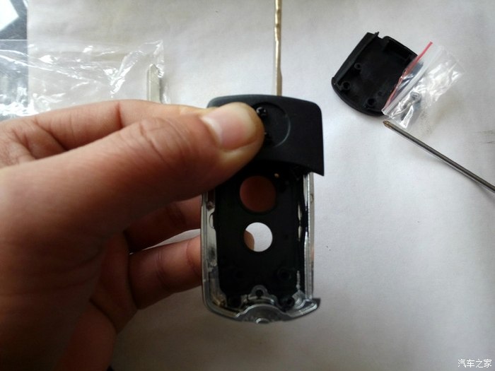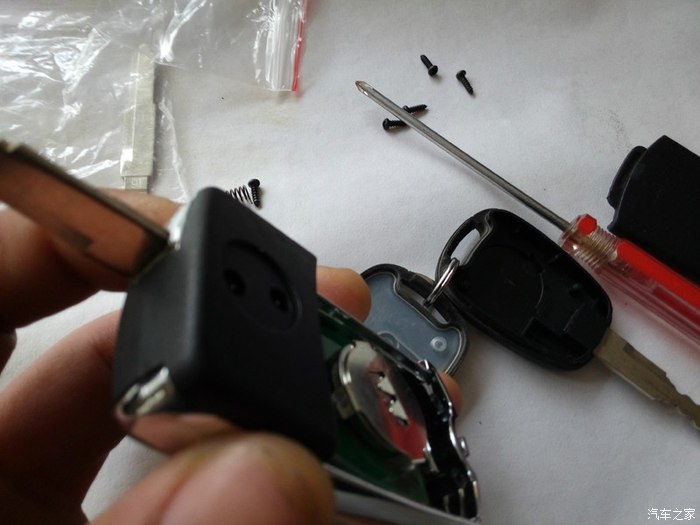 开模后,直接装入钥匙位,上半部分壳扣上,试试钥匙弹开、闭合的效果满意后再紧螺丝。