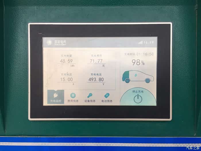 最终结果是99%。。。。被停车场的管理员赶着走。。。说下班了,,,这个情况也是非常幸运的事,还好刚刚充满啦!!!