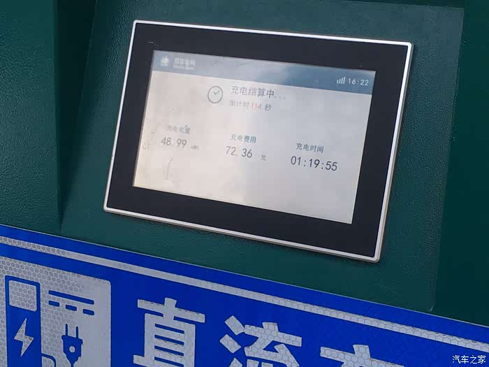 看到了,历时1个小时20分钟,充电量是48.99kwh, 费用为72.36元