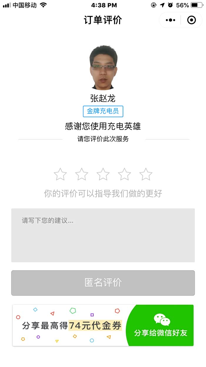 因为我已经有10次代充点电优惠券,这次可以使用一张~~~~