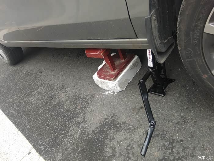 千斤顶摇到顶(这个空间高度足够施工了)找些物品垫一下,安全第一,防止千斤顶倒掉