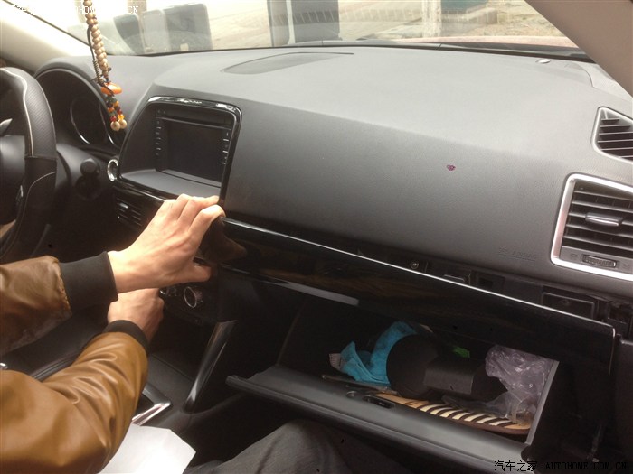 内饰上我又再次体验了一番,新奇骏做工确实好,只不过内饰风格真不是我的菜。总体感觉线条的营造和搭配缺乏些美感,镀铬东西用的较多,稍显老气。CX-5中控简洁朴实,大面积覆盖的那块软塑料,棱角设计的十分有特点,也很舒服,耐看。但是一眼看上去显得抵挡,我觉得CX-5内饰败笔在手扶箱到水杯架到排挡杆再到点烟器这里,加上那个特山寨的导航。所以杯架那里我也做了个装饰,扶手箱我重新包过,下一步就是换这个导航。新奇骏这块除了那个圆弧形隆起的排挡我比较排斥外,都挺显档次的。