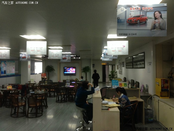 3.4s休息大厅,你进去也没人招呼,那边有个女孩就低头写着什么,来人头也不抬,后面放了个咖啡机,貌似可以提供免费咖啡,但就是没人理你。以前铃木那边好歹茶水,瓜子,可乐,咖啡,水果样样不少,大厅放几个按摩椅,去过几个4s,服务人员总是很热情。