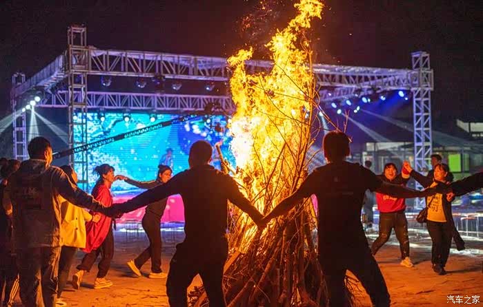后来的营口之夜,我们又看过漫天的烟花,也裹紧外套围着篝火起舞,夜晚的舞台璀璨,歌手们放声高歌,将这静谧的夜点燃起来。