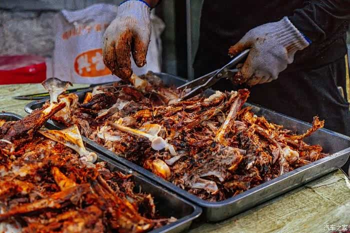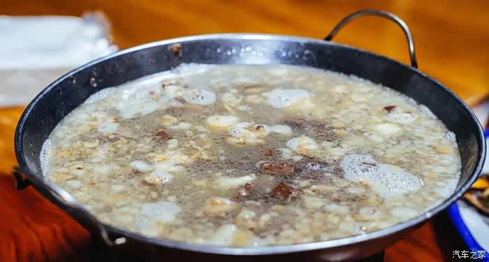 大只的烤羊被剪刀大剌剌的剪成一块一块,盛盘上桌,羊汤冒着热气咕噜噜的暖胃。