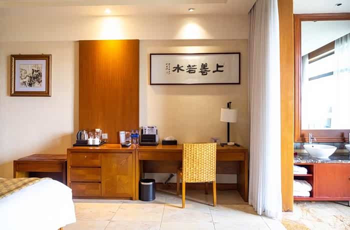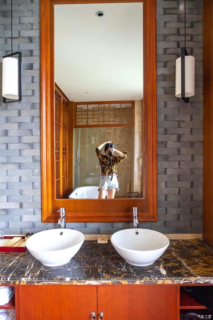 泡完温泉回到客房,房间也是经典的中式风。面积适中,设施一应俱全。沐浴很贴心的设置了淋浴和浴缸,连洗手台都备了两个。