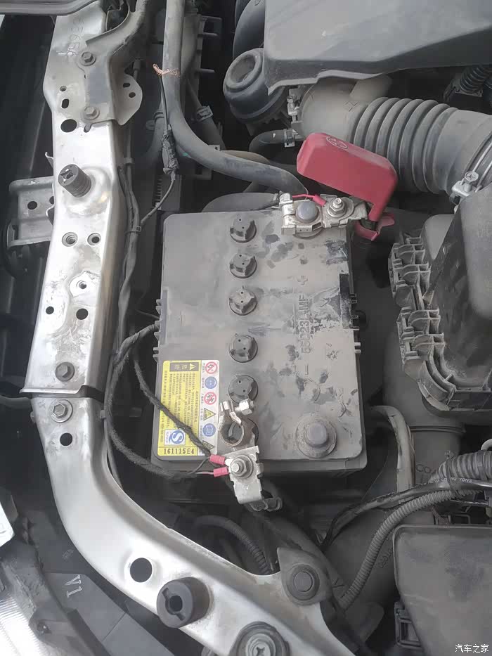开机器盖子,电瓶已经跟了我2年,被折磨的不成样子。