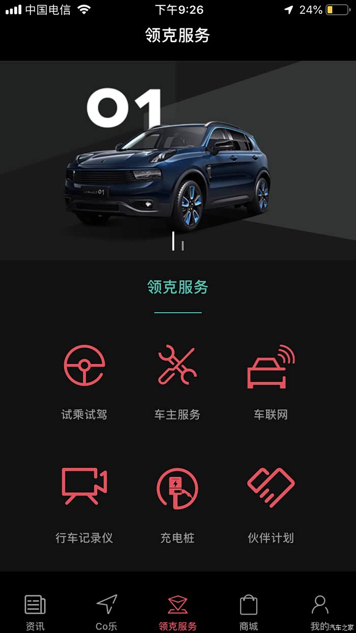 点击APP下面的 领克服务页面,然后点击车联网