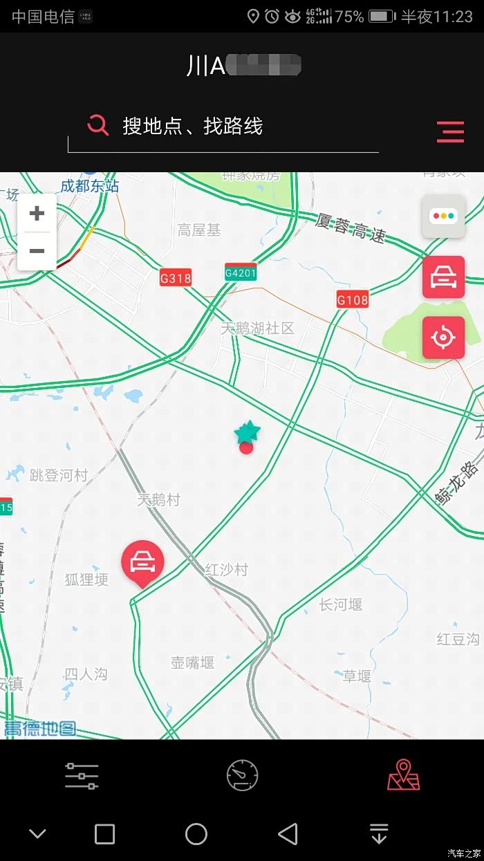 车联网,这个对于车主体验不错,进去车联网第一个界面是远程控制系统:启动引擎、闪灯鸣笛、车门锁,第二个界面是车子信息:总里程、剩余油量、平均百公里油耗,第三个是定位系统,这个地图定位很精准,以后找车没有烦恼。