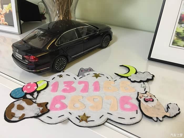 先来一张挪车牌成品和4S店送的1:18帕萨特车模图片镇楼开篇。
