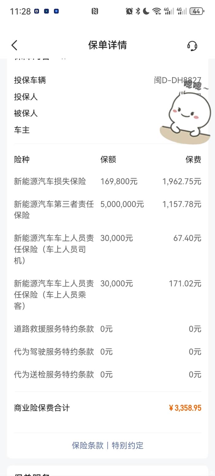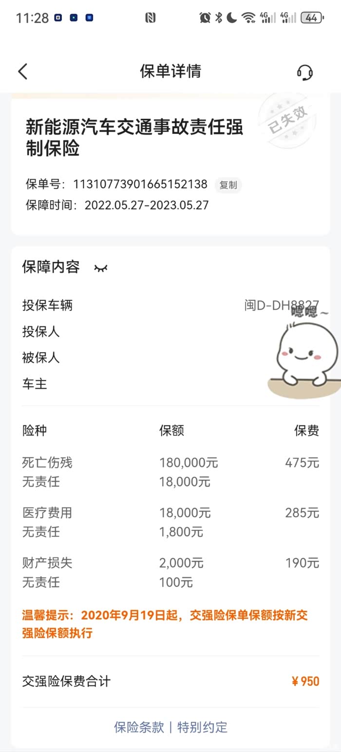那边这边就以我的零跑C11为例,看看这款17万左右的电车第一年和第二年所交的保险明细和费用吧