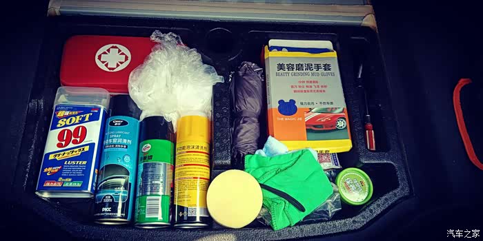 没有备胎的好处就是下面天然的储物槽,但是空间很浅,只能放得下部分养护用品。