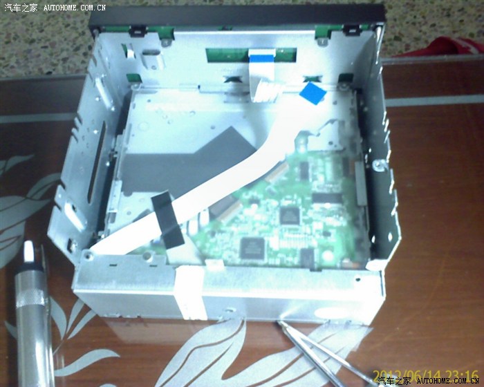 装上车子的效果,注意看机子的右上角,已经增加了AUX音频输入插口,增加这个插口对生手来说是有点难度,过程我没拍下来,不过饿人也跟我同时在搞7850和这个AUX,所以我就发他的图好了,我们都是同一天搞的,一边搞一边聊,搞得很爽,我比他爽,我一次成功,他半路停车了,