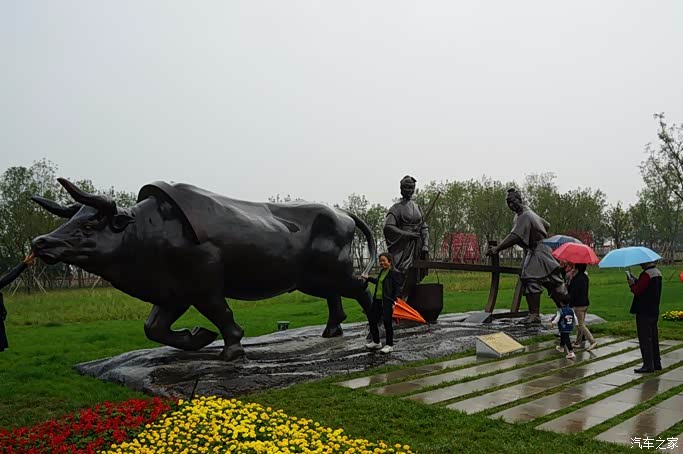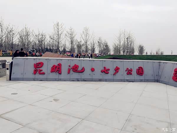 抵达昆明池 七夕公园 公园两边都是新载的柏树