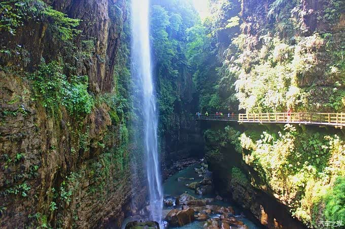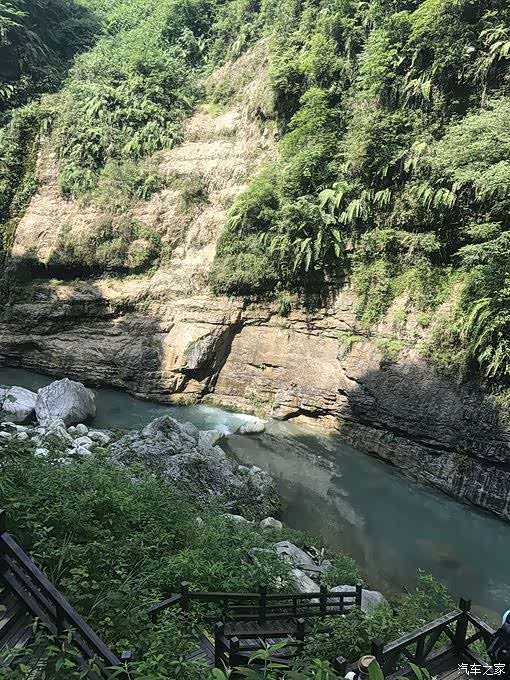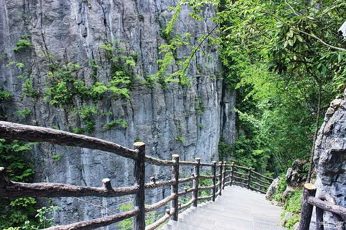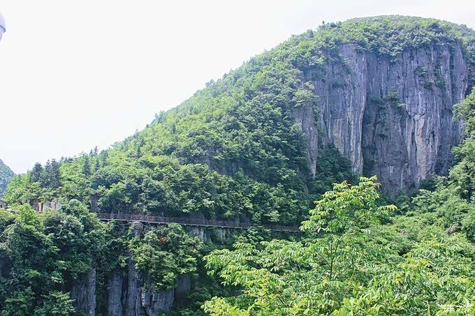 走完绝壁栈道,顺着游道,走到一很深的山谷中。