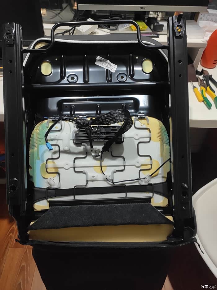 拆下的前排,前排座椅下有传感器的线,拆的时候需要注意一下