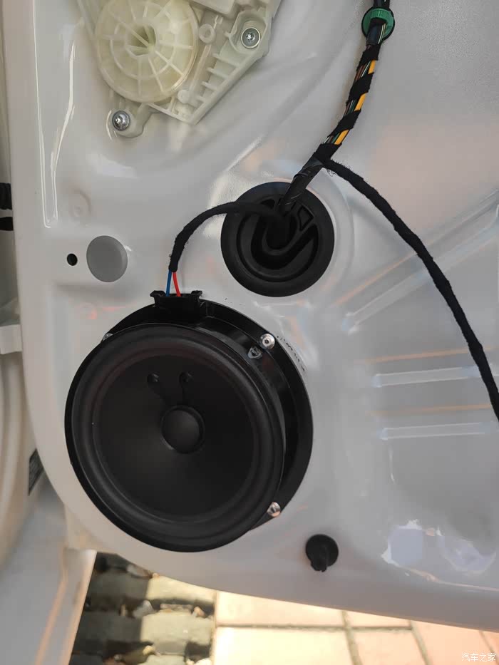 2、两后门板加装喇叭以及A柱加高音喇叭(拆车件)
