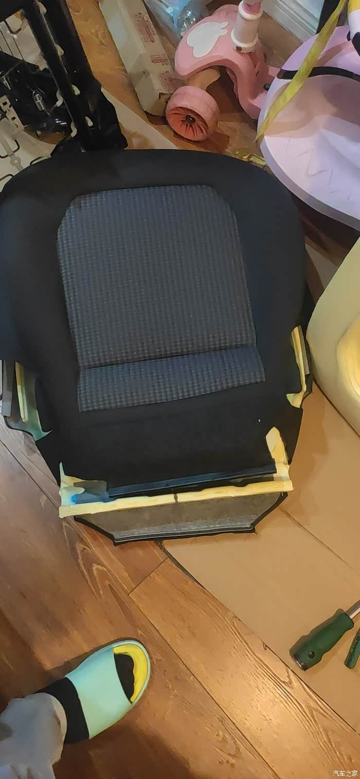 先买了工具,自己研究改装的,从某鱼买的,如果是全皮革的材料费才300元,还送座椅卡钉;因为自己安装的,拍的照片比较少,先这样看着吧。